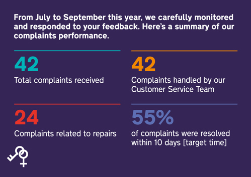 We value feedback and use it to improve our homes and services. To build trust and demonstrate accountability, we publish our complaints performance each quarter. This ensures transparency, shows how we handle customer concerns, and highlights the progress we are making. By sharing this information, we encourage open communication and reassure customers that their concerns are taken seriously.